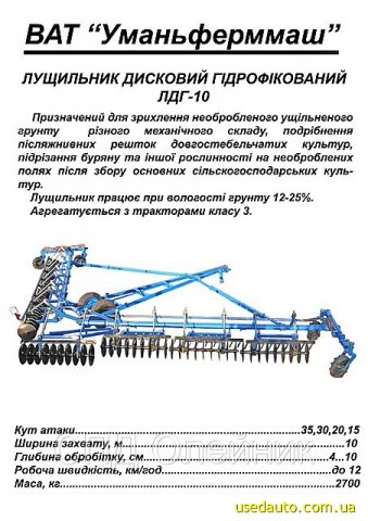 Реалзуем лущильник дисковый гидрофицированный ЛДГ-10М.-предназначен для неглубокой ( 4-12см) обработки почвы после уборки сельскохозяйственных культур(лущение стерни) с целью создания на поверхности почвы слоя мульчи из частично измельченных остатков растений, и распушивание грунта который сдеживает испарение влаги и провоцирует всходы сорняков! |