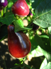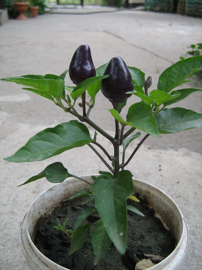 . Новинка! Плоды в недозрелом состоянии имеют форму конуса сиреневого цвета. Лист сиренево-зеленый. В созревшем виде плоды темно-сиренево-вишневые. Высота куста до 25 см. В пакетике 6 семечек. Цена 10 грн. |