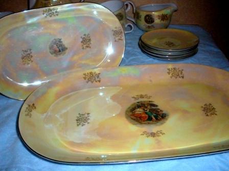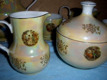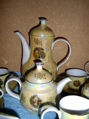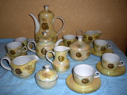 Подлинный роскошный классический немецкий фарфоровый (столовый+кофейный+чайный) сервиз "МАДОННА" - производства Kahla (ГДР) перламутровый с позолоченной окантовкой на 6 персон. Всего 60 предметов. Куплен в 1978 году в Германии, в употребление не был (подарила мать в наследство).