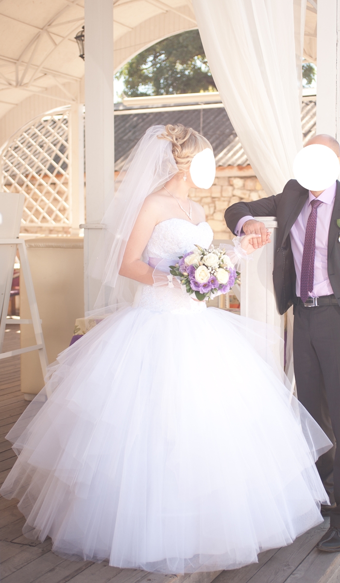 Продаю, сдаю в прокат свадебное платье б/у в отличном состоянии 2012года, Николаев, при покупке - бижутерия в подарок! Фатиновая юбка, корсет обшит стеклярусом и камнями Сваровски. К платью прилагается бант с брошью, при желание сереневый пояс можно убрать. Торг возможен. |