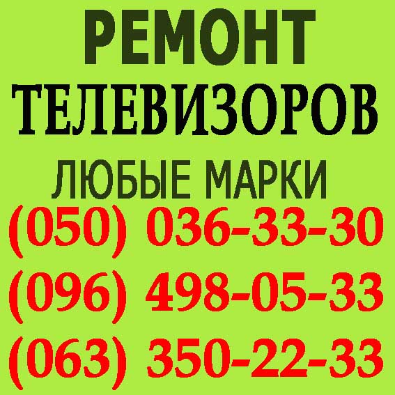 Ремонт телевизоров Николаев. Отремонтировать телевизор в Николаеве Ремонт телевизора Николаев. РЕмонт Телевизоров в Николаеве. Отремонтировать телевизор по Николаеву. Вызов теле мастера. Задача нашей компании как можно качественнее предоставить услуги по ремонту телевизоров жителям города Николаев. Телемастерская "Ремонт По Заявке" производит срочный ремонт плазменных, Lcd и Led телевизоров в Николаеве в любое удобное для Вас время. Выезжаем во все районы Николаева: Ленинский, Центральный, Заводской, Корабельный Прежде чем вызвать мастера на дом, запишите модель телевизора. Его можно увидеть на задней панели. Телевизор не включается; Телевизор включается с задержкой; Телевизор не реагирует на пульт; Телевизор самопроизвольно выключается; При просмотре фильмов через USB звук хрипит, а потом пропадает. Если вдруг панель телевизора не светится. Экран вспыхивает и гаснет сразу или через несколько секунд. Не светится экран телевизора; На экране телевизора появляются вертикальные линии; Горизонтальные полосы; Тёмная полоса в половину экрана; На телевизоре появились пятна овальной формы; Изображение есть, нет звука. При этих поломках, необходимо отремонтировать телевизор в Николаеве. По модели мы определим диагональ и стоимость ремонта телевизора. Сервисный центр по ремонту телевизоров предоставит квалифицированного мастера, который на профессиональном уровне произведёт бесплатную диагностику телевизора у Вас дома. Если ремонт телевизора связан с рядом серьёзных проблем и не удаётся устранить неисправность у заказчика, наш сервисный инженер отвезёт его в мастерскую. Телефоны: (050) 036-33-30, МТС, (050) 502-49-48, МТС, (096) 498-05-33, Киевстар, (098) 330-61-20, Киевстар, (063) 350-22-33, Лайф, (063) 637-14-32, Лайф Сайт: www.remontpozayavke.uaprom.net |