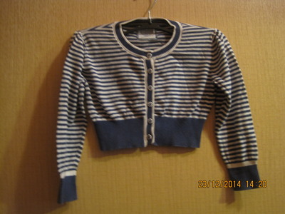 стильная девичья( 6-7 лет) кофточка хлопковая в сине-белую полоску. |