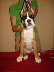 Для улучшения породы Немецкий Боксер, нами получен помет щенков от пары высокопородистых родителей BERRY DENBURG x JROPOLK MAULTASH, д.р.7.10.2010г.(документы КСУ-FCI).Четыре щенка разъехались по Украине в новые семьи. Еще ждут встречи со своими новыми родителями два замечательных мальчика.Сейчас им 3,5 месяца. Это крупные, коститстые щенки, с породной, хорошо закурношенной головой, яркой внешности,рыжего окраса, третье веко прокрашено. Им сделаны все прививки, они имеют уравновешенный характер. Собаки для выставочной карьеры и племразведения и просто как домашние любимцы. На них готов весь пакет документов.