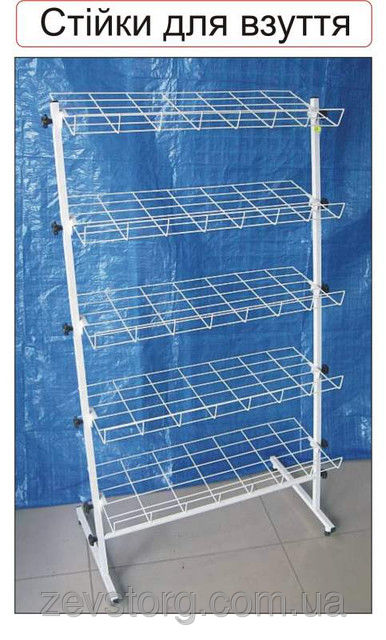 Стойка для обуви предназначена для размещения обуви в торговых залах магазинов, рынках, выставках для наглядной демонстрации всего ассортимента продукции.