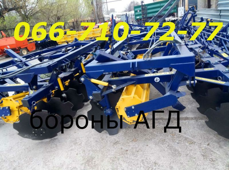 АГД-4.5Н дисковая, на трактор Т-150 борона. Агрегат почвообрабатывающий АГД-4.5Н – тип агрегата – прицепной. Тип бороны АГД-4.5Н – дисковая. Крепление рабочих органов на раме – через индивидуальные стойки. Количество регулировок угла атаки – 6. Диаметр дисков -650мм. Ширина захвата – 4500мм. Возможная глубина обработки почвы от 5 до 20 см. Масса дисковой бороны АГД-4.5Н – 2100 кг. Также в наличии бороны дисковые любой другой ширины захвата: на трактора 40-60 л.с – АГД-1.8, на трактора 60-80 л.с – АГД-2.1, на трактора – 80-90 л.с АГД-2.5 , на трактор мощностью 90-100 л.с – АГД-2.8, для тракторов 120-150 л.с – АГД-3.5, для 150 л.с и выше – дисковая борона АГД-4.5 и АГД-4.5Н. На все почвообрабатывающие агрегаты предоставляется гарантия. Доставка по Украине в кратчайшие сроки. Оплата любым удобным для вас способом.