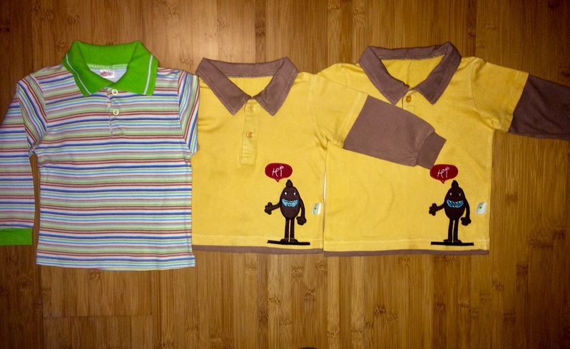 футболка трикотажная поло "Татошка", зеленая - размер 92, хлопок 100%. Длина – 36 см Ширина под мышками – 26,5 см Длина рукава – 29 см Футболка трикотажная поло "Татошка" синяя есть двух размеров 80 и 98: длинна по спинке 30 и 37см, ширина рубашки 27 и 30см., длинна рукава от плеча 27см и 33см, Каждая стоит 35 грн. За две рубашки 60 грн. За три - 90 грн. |