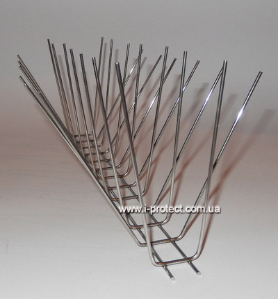 Изготовлены шипы из нержавеющей стали, которая устойчива к погодным условиям, прочна и долговечна. Крепится данное устройство с помощью силикона, монтажного клея, шурупов, гвоздей на поверхности любой формы. «Игла 33 М» состоит из секций длиной 33 см, на секции расположены ряды игл с разным углом наклона, которые расходятся в стороны в форме буквы "V". Ширина защищаемой поверхности одной секцией составляет 25 см, длина – 40 см. Секции можно соединять друг за другом. После размещения шипов птицы не могут сесть на поверхность, которую антиприсадные иглы защищают. Антиприсадные иглы эффективны также в случаях, когда ласточки или стрижи вьют гнезда под крышей.
